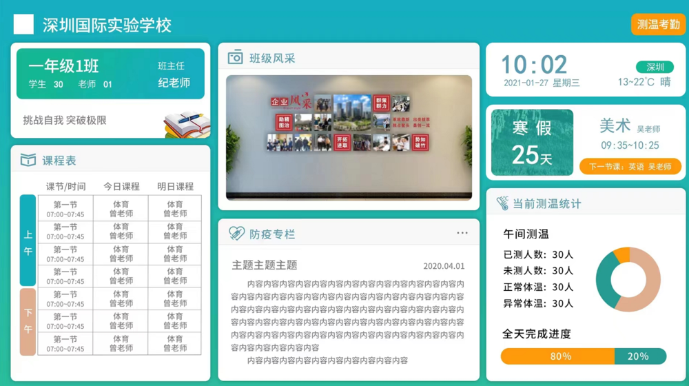 硕沃测温电子班牌终端内容展示