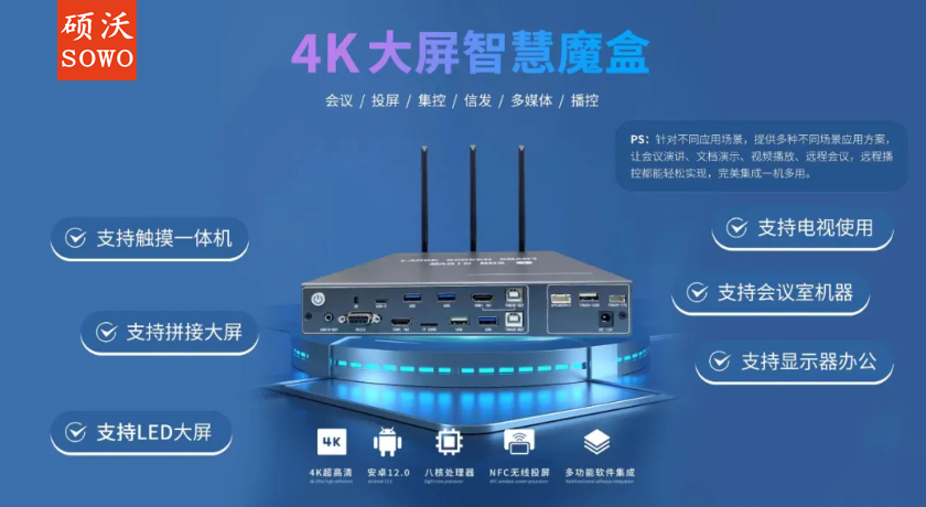 痛点直击: 你的会议室是否还在为老旧设备卡顿、画面模糊、协作低效而烦恼? 教育机及早置安卓机系统老旧、功能单一、无法满足互动教学需求? 硕沃智能大屏魔盒,专为大尺寸LED小间距,投影大屏显示,电视机等单纯显示设备提供HDMI端口输出一键解决系统瓶颈!