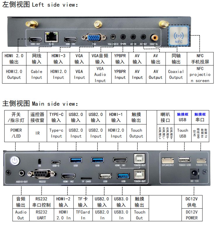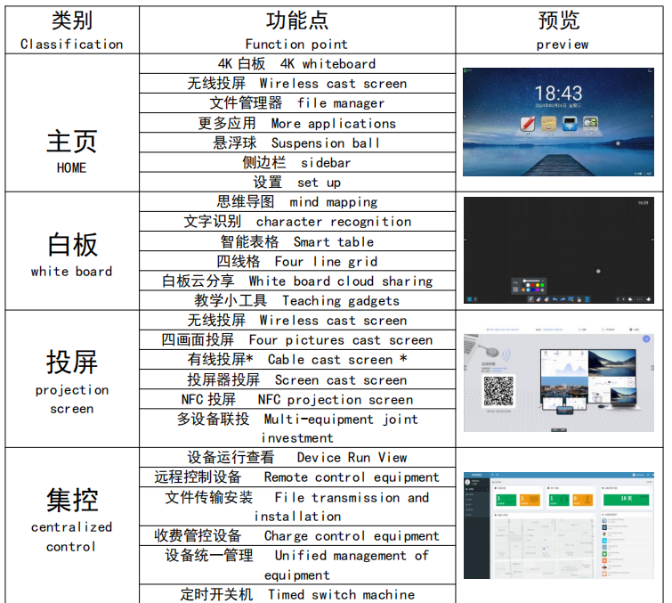 产品功能特点 1. 2. 3. 4. 5. 6.多场景无缝适配 • 会议场景:无线传屏+20点触控书写(支持外接触摸),支持分屏对比与实时批注,会议纪要一键导出。可外置1300万像素摄像头+8阵列麦克风,远程会议如临其境。 产品接口丰富: