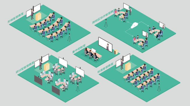 1.1 应用场景现在更多的高校进行教室智慧化改造的过程中会把一层教学楼或者整栋教学楼进行重新设计,旨在为学生提供更多样的学习空间,本方案设计包含标准智慧教室、研讨型智慧教室、大型阶梯智慧教室、集中控制室等整体解决方案。