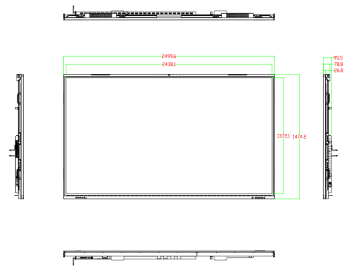 显示参数 | 屏幕尺寸 | 110"LED屏(16:9):2436.48×1370.52 mm 【HxV】 |